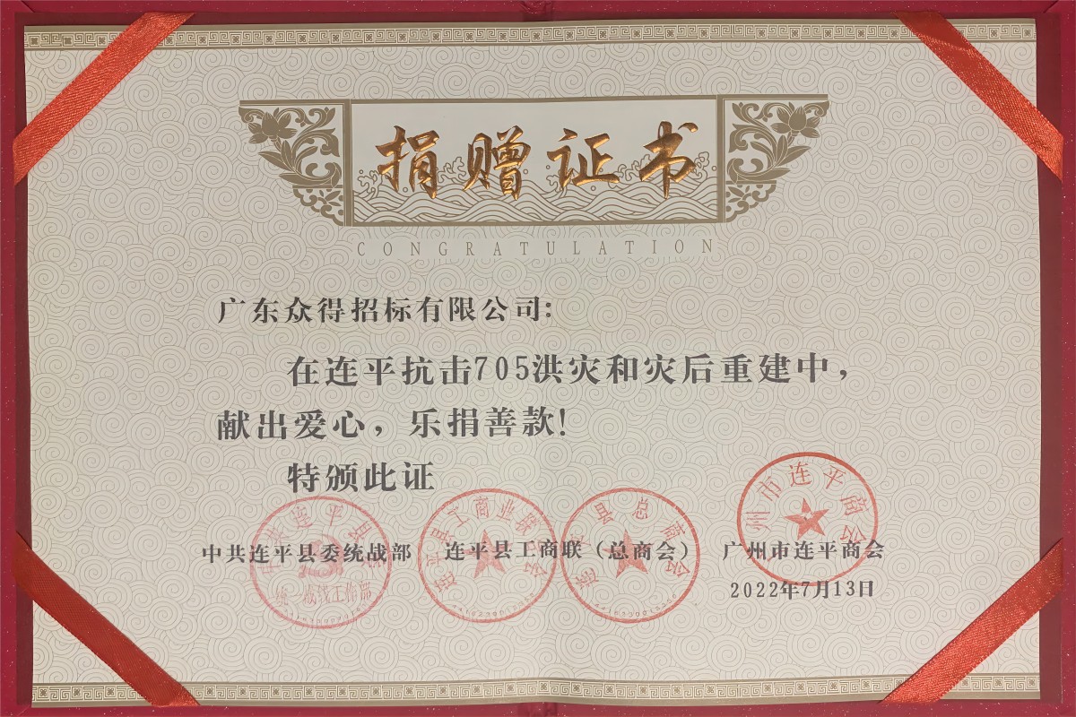 2022.7 向河源市連平縣抗擊705洪災和災后重建捐款